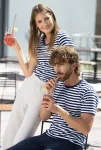Wenn Sie ein Baumwoll-Damen-T-Shirt mit blauen und weißen Streifen suchen, das besonders für das Wasser geeignet ist, haben Sie es gerade gefunden.
