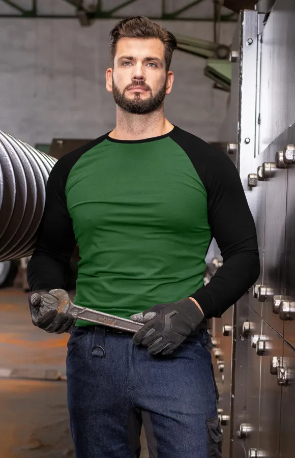 Herren Kontrast T-Shirt mit langen Ärmeln, Flaschengrün, XL