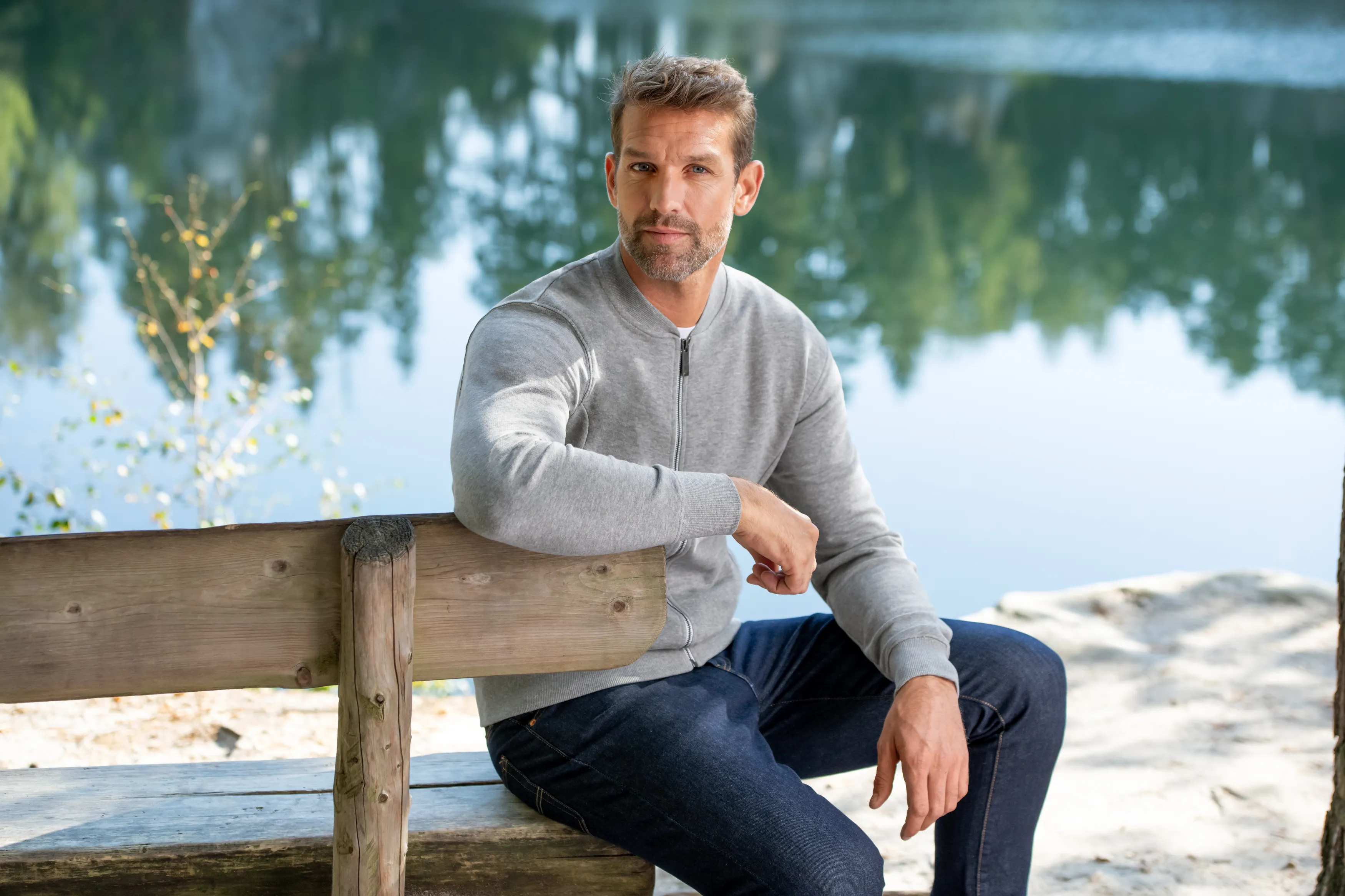 - Herren-Sweatshirt mit Reißverschluss, ohne Kapuze