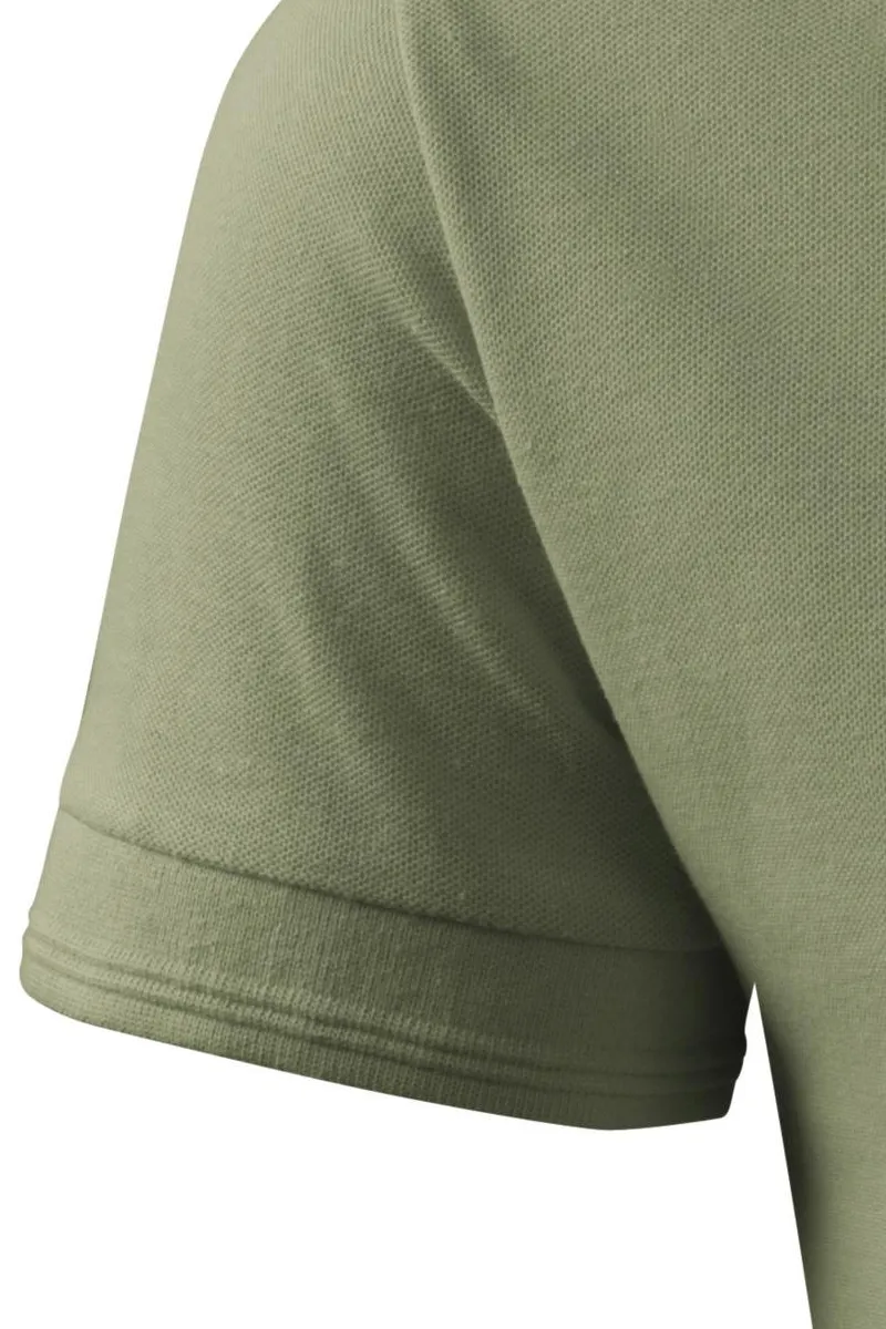 Das lockere Poloshirt für Herren besteht aus einem Stoff mit einem Gewicht von 200 g/. Es ist das am häufigsten verwendete Gewicht für Poloshirts.